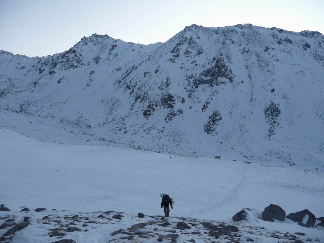 Солнце еще не взошло, но полная луна уже рыжая, она за спиной и освещает путь. На светлеющем небе еще горят звезды, со всех сторон молча смотрят горные исполины, где-то рядом, может быть, спит снежный барс, они здесь водятся. В общем, ощущения совершенно мистические.