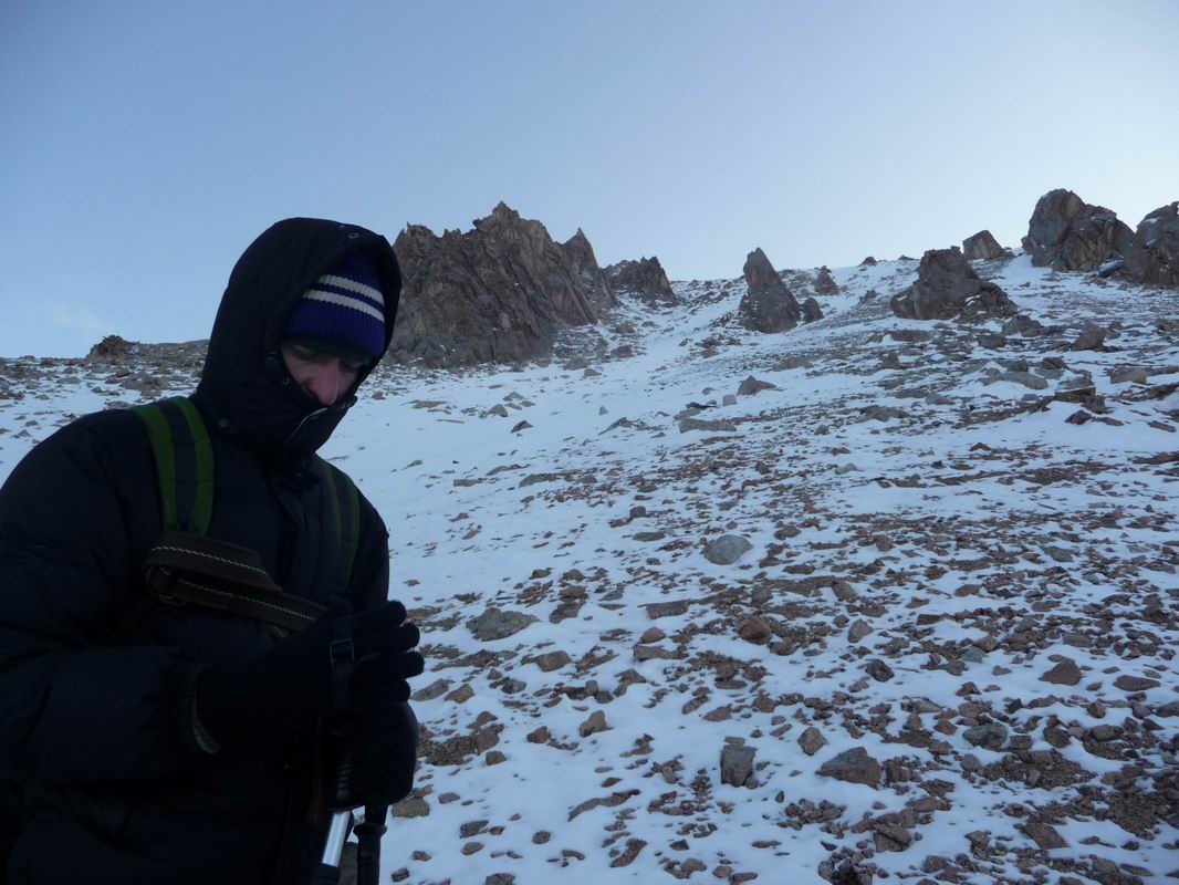 Я устал и замерз. Высота тут около 3100 метров и очень хорошо будет здесь переночевать — можно отдохнуть и немного акклиматизироваться в условиях пониженных кислорода, атмосферного давления, плотности воздуха и прочих приколов. Спасибо, Дядьколь!