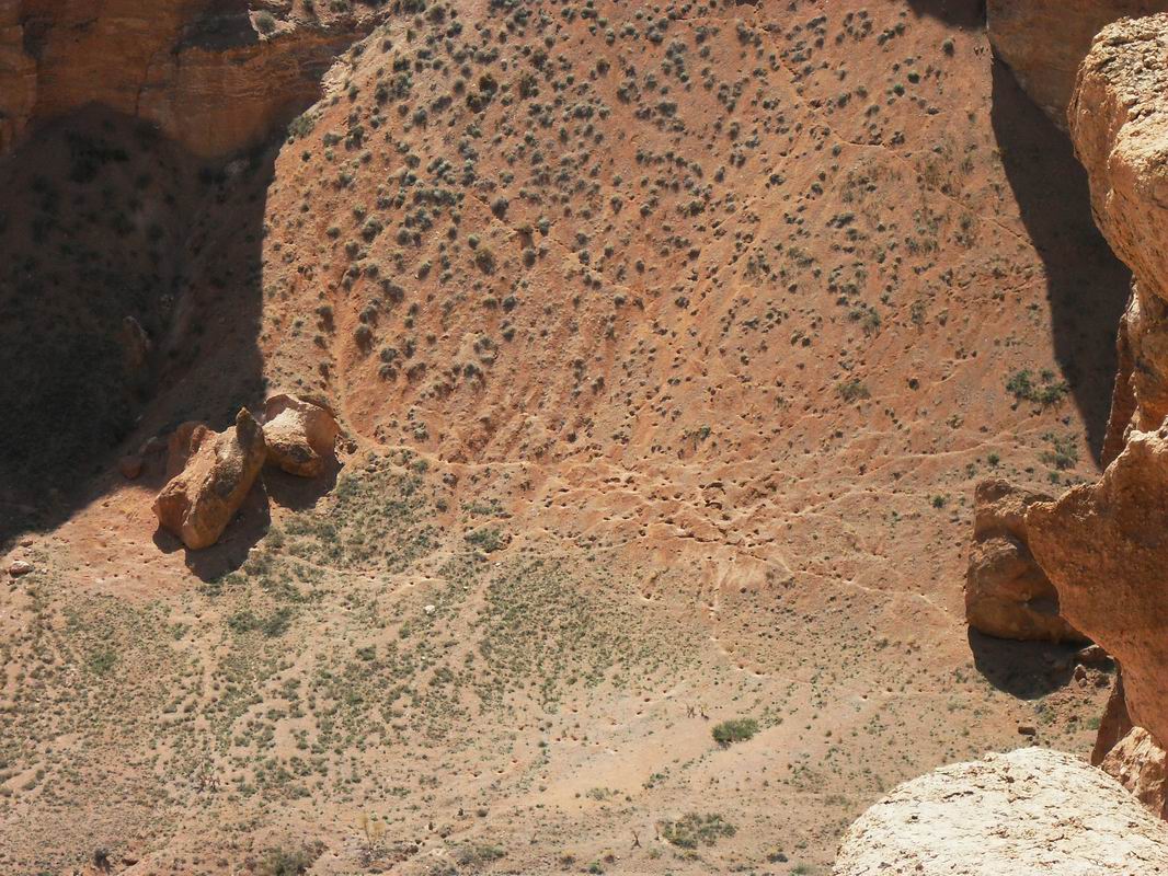 Если от валунов слева провести воображаемую прямую до валуна справа, то прямая пройдет через группу отверстий в склоне. Это не просто так отверстия, это жилые отверстия, это тушканочья или сурочья многоэтажка и они в ней живут.