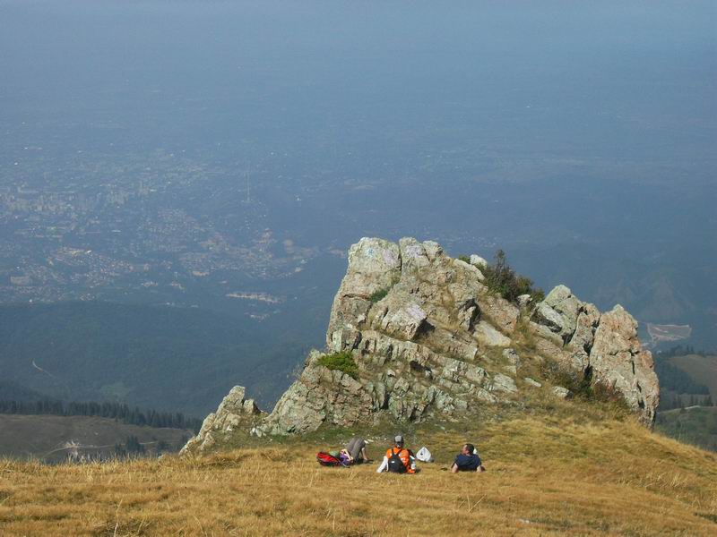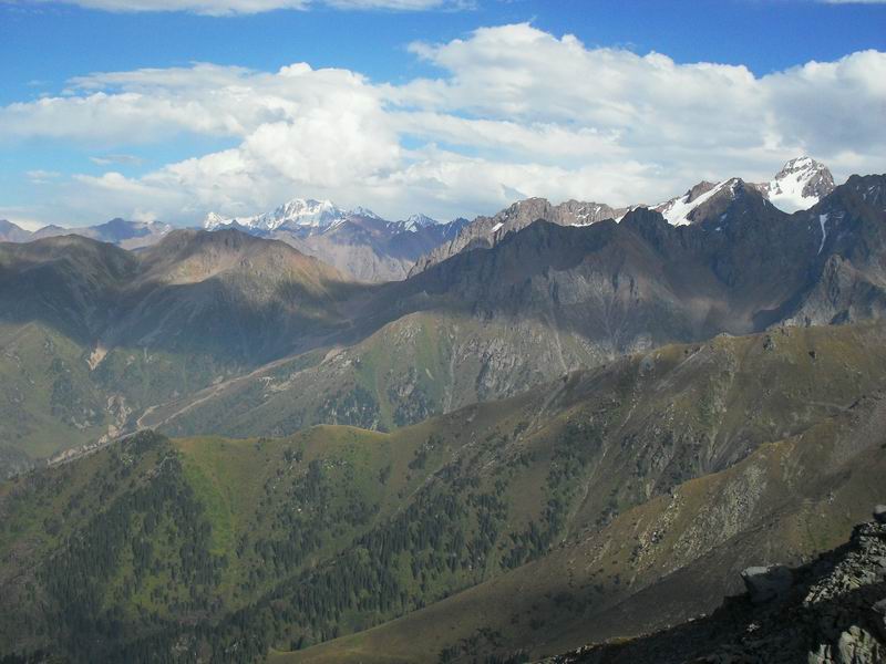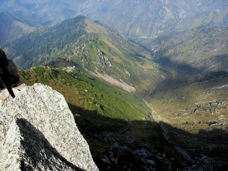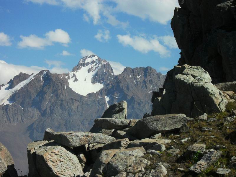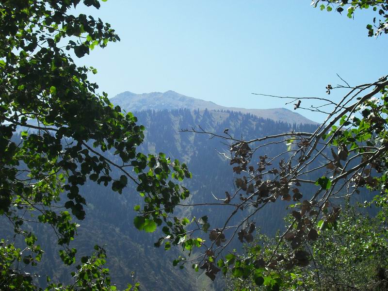 Справа — отличные виды на высокие горы, в том числе, на пик Комсомола (сейчас пик Нурсултан). На этот пик ежелетне в день рождения Назарбаева проводят альпиниаду для любителей — массовое восхождение. Любой неофит может воспользоваться бесплатными услугами профессионалов и пройти по подготовленному маршруту на эту вершину, высота 4330.