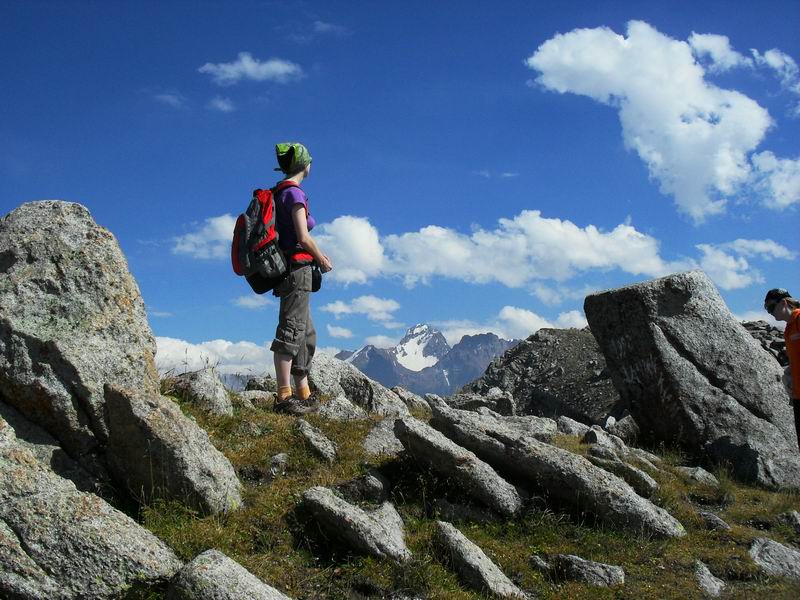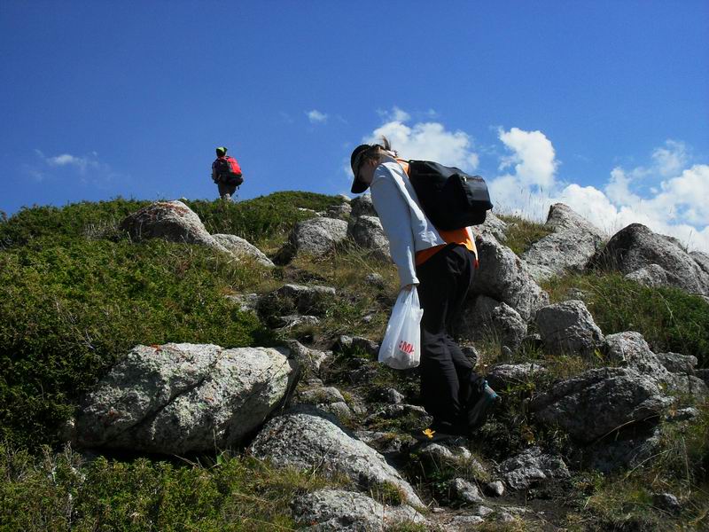 … поднялись мы на Три Брата. А там возлежат две красны девицы и знакомый нам уже грибник. Он нас обогнал, набрав при этом мешок сыроежек, лисичек и прочих подопят. Красны девицы же, узнав, что мы следуем на Кумбель, попросили нас принять в свою команду, что я с удовольствием и сделал — ведь мне сейчас очень нужны новые впечатления и хорошие знакомства.