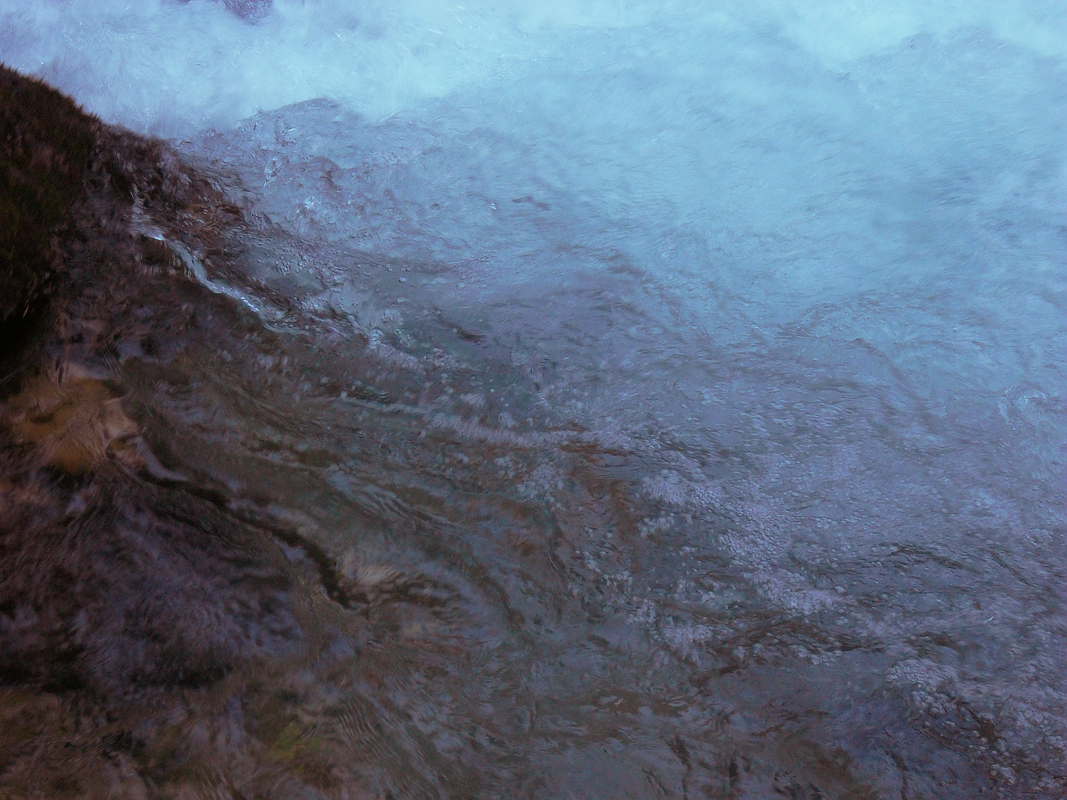 Спускаемся мимо озера. Вода в нем хоть и синяя, но матовая, молочная какая-то, очень необычная и приятная на вид.