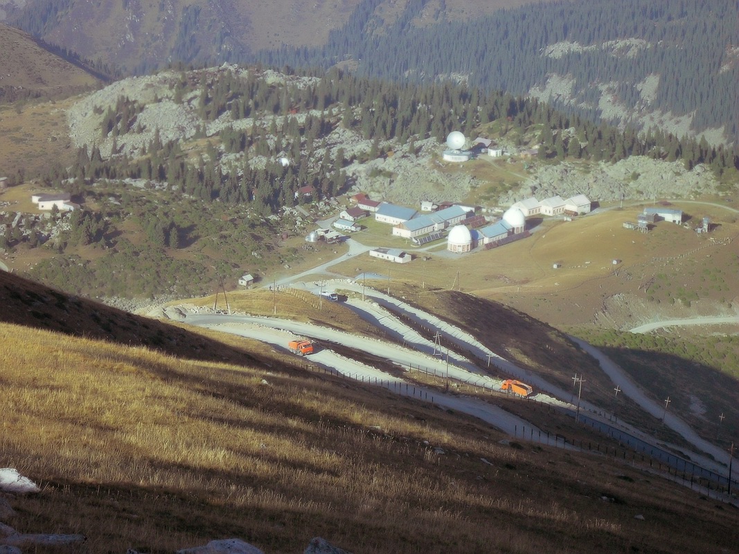 Еще в Казахстане есть компания «Национальный центр космических исследований и технологий», которой, в числе прочих объектов, принадлежит Космостанция — здесь ведутся проекты по регистрации частиц космического излучения. Располагается Космостанция на перевале Жусалы-Кезень, на высоте 3336 метров над уровнем море, очевидно, тут лучше регистрировать частицы. Вот именно сюда, вместе с космическими частицами, мы сегодня и направимся.