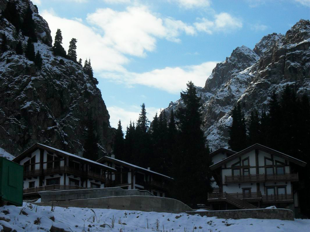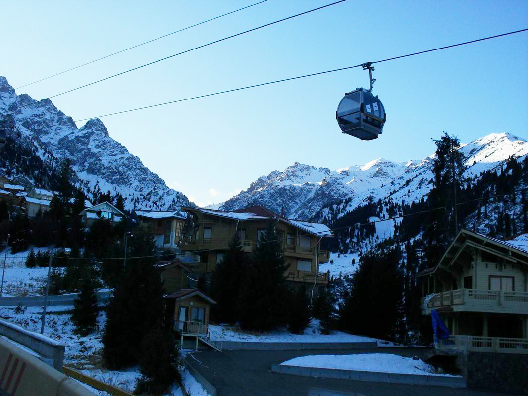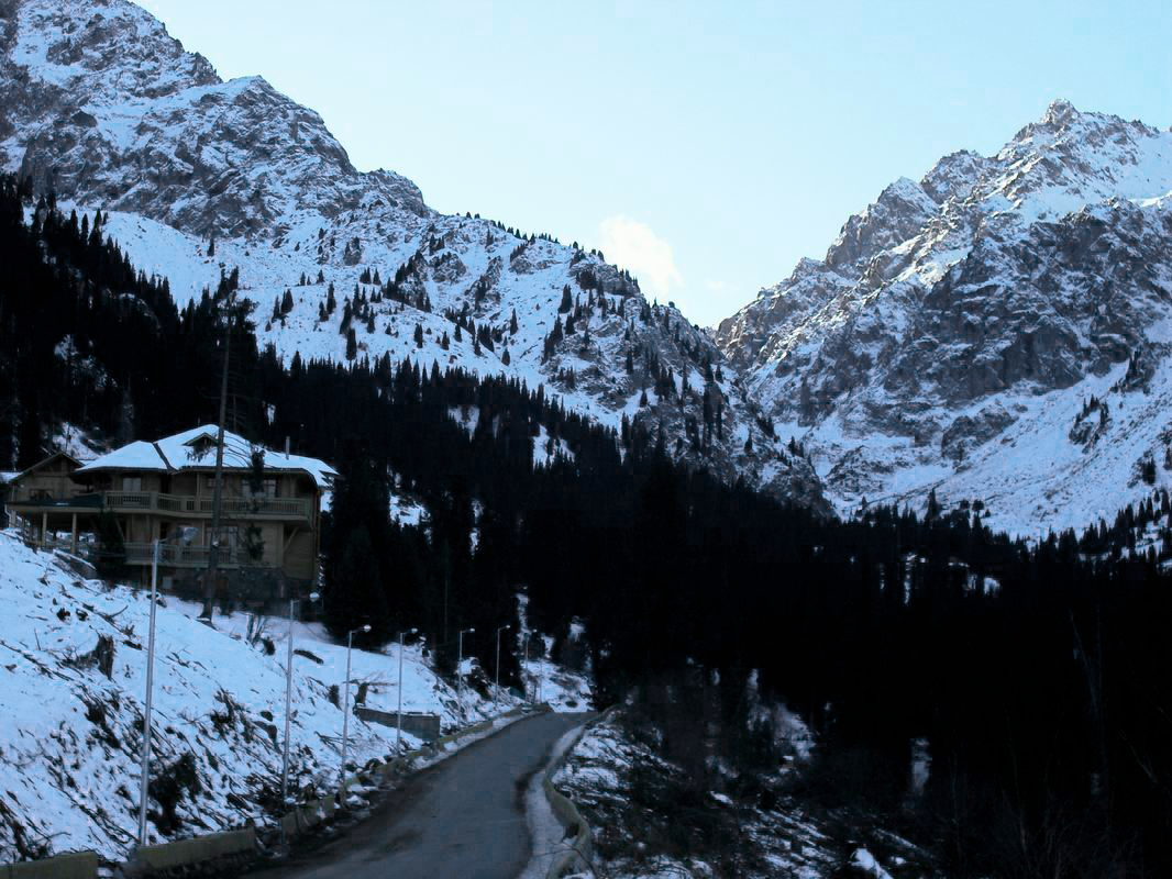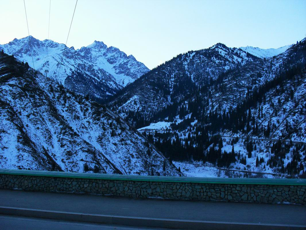 Только-только началось утро, солнце еще не взошло, позади — всемирно известный в конькобежных кругах высокогорный каток Медео, впереди — популярный горнолыжный курорт Чимбулак, слева — гондольная дорога, справа — автомобильная дорога, непосредственно под ногами — противоселевая плотина. Здесь сейчас никого, очень тихо и уютно. Но схожу-ка я сегодня вооон к тем самым дальним высоким горам, посмотрю, что там есть полезного!