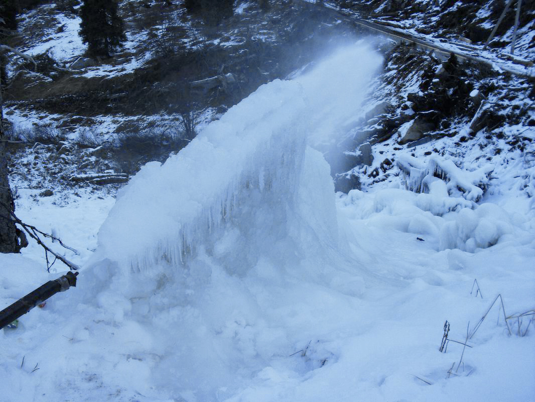 Из земли торчит неведома труба и из нее под большим давлением бьет струя воды. Так появилась гигантская сосуля имени Валентины Ивановны.