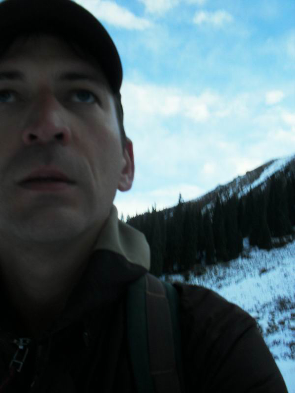 Как это все-таки удивительно: в городе еще теплынь, градусов 15, на многих деревьях зеленые листья, а тут уже вовсю зима. Я пока очень легко одет — на подъеме не замерзнешь, когда нет встречного ветра.